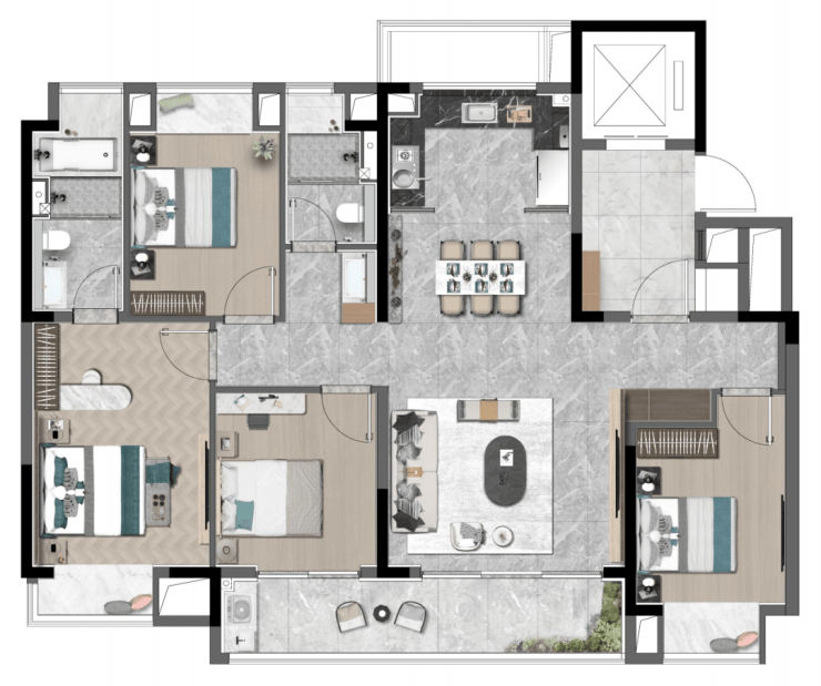 **【不雅赋】建面约235㎡四室两厅三卫**:此为奢